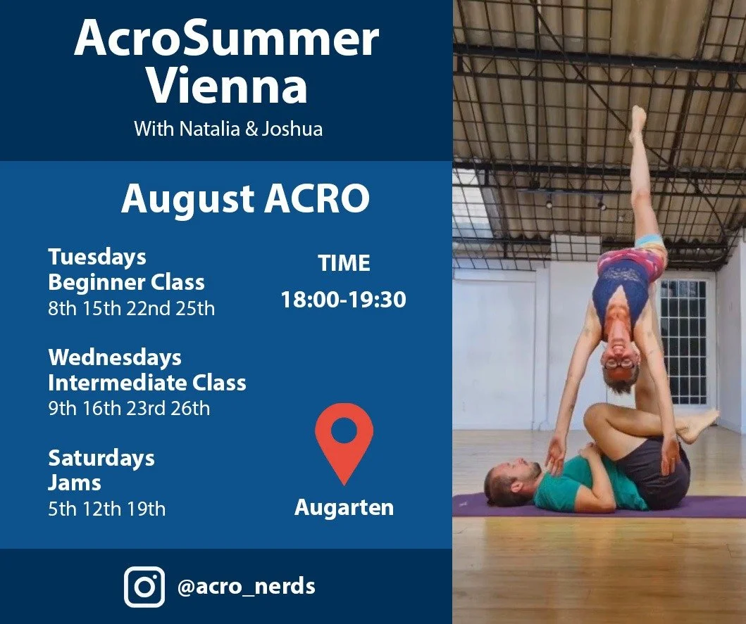 Natalia & Joshua are coming to Vienna for the whole month of August and will offer Open-level classes on Tuesdays and Intermediate classes on Wednesdays, as well as jams on Saturdays. It's gonna be a month filled with Acro!